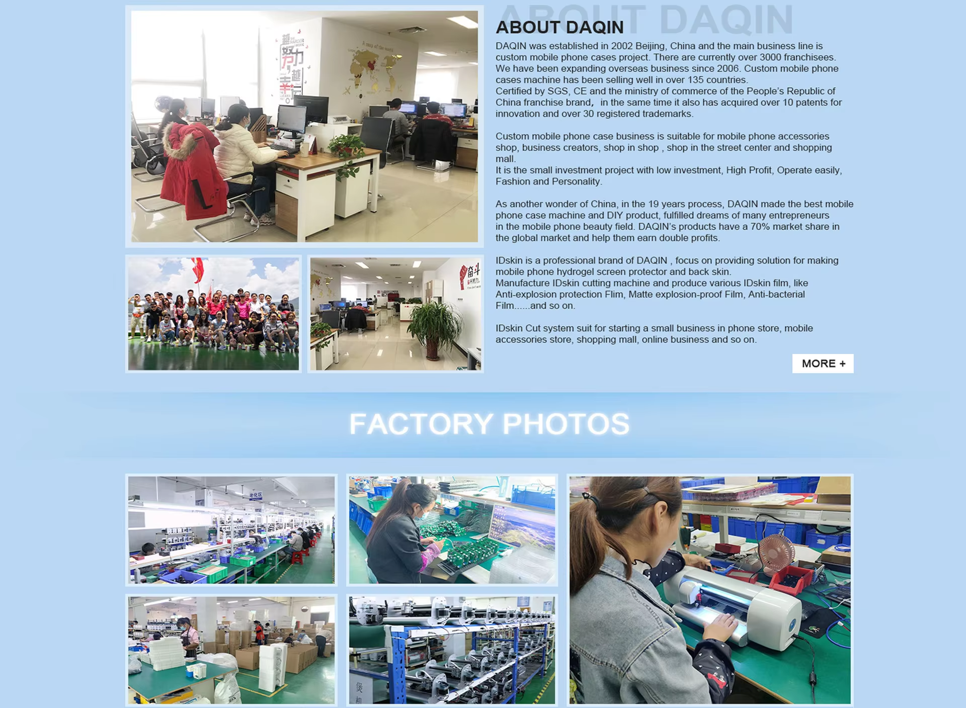As another wonder of China, in the 12 years process, DAQIN made the best mobile phone sticker machine and DIY product, fulfilled dreams of millions of entrepreneurs in the mobile phone sticker machine field. 4 of DAQIN′s products have a 70% market share in the global market. For the mobile phone sticker machine, DAQIN is your first choice!
